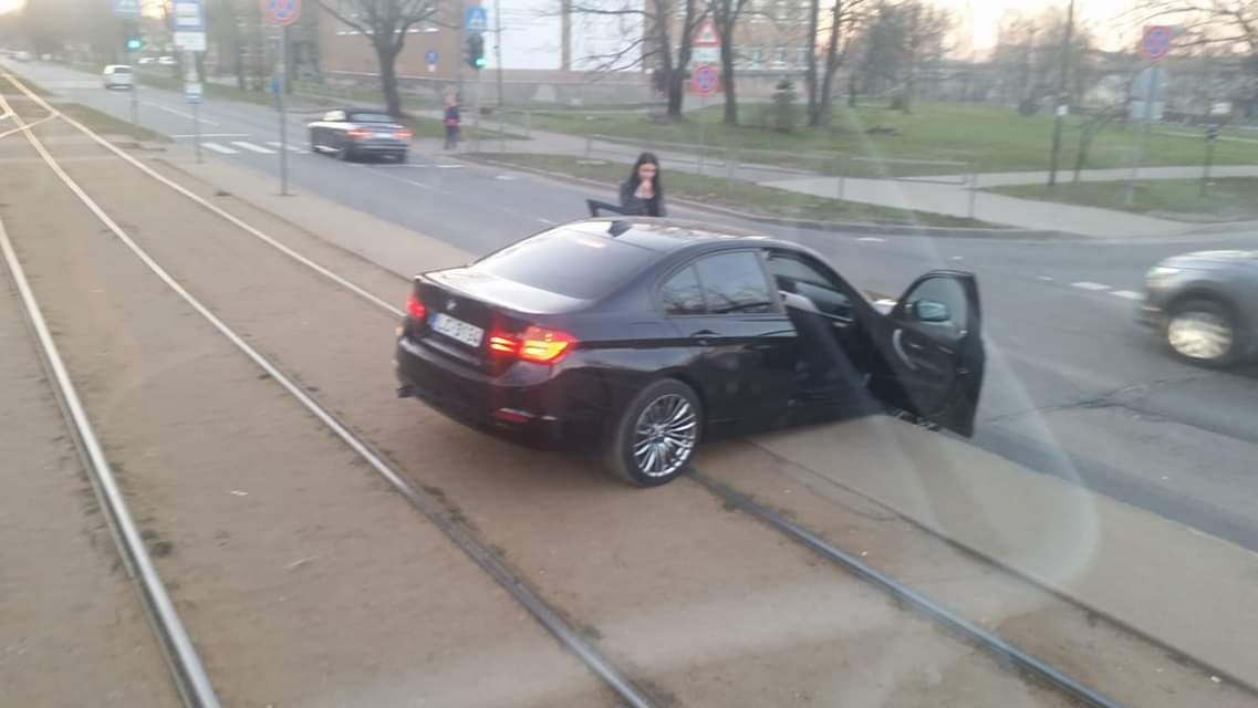 с Тилта поворачивал налево на Саркандаугавас и удивился, как это сделали дорогу только по трамвайному полотну. Идея съехать появилась, когда обратил внимание, как люди пальцем показывали, ну я, конечно не застрял так эпично.