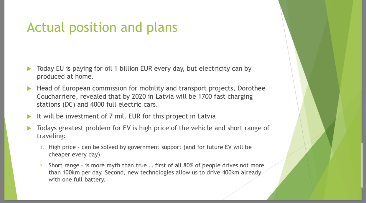 В латвийских реалиях доля электромобилей будет маленькой, то есть доход государства от акциза на топку никуда пока не денется. Соответственно, те кто их купят, будут иметь эти бонусы в виде отсутствия налога, бесплатных парковок. Будут возможно и бесплатные зарядки (к примеру Lidl).