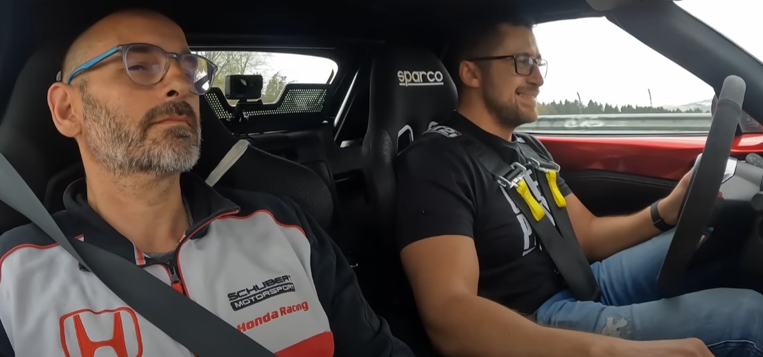 Алексей ты же тоже по кольцу гонял(ешь). Засними своё выражение лица. Для себя. Или сосредоточено наваливаешь или ведёшь светскую беседу с хорошим собеседником. Когда на Бикерах увидел впереди Санька на аналогичной машине я забыл про всё, в том числе про пассажира. Вспомнил про Макса только когда поехал на остывочный круг по выдоху облегчения с его стороны.