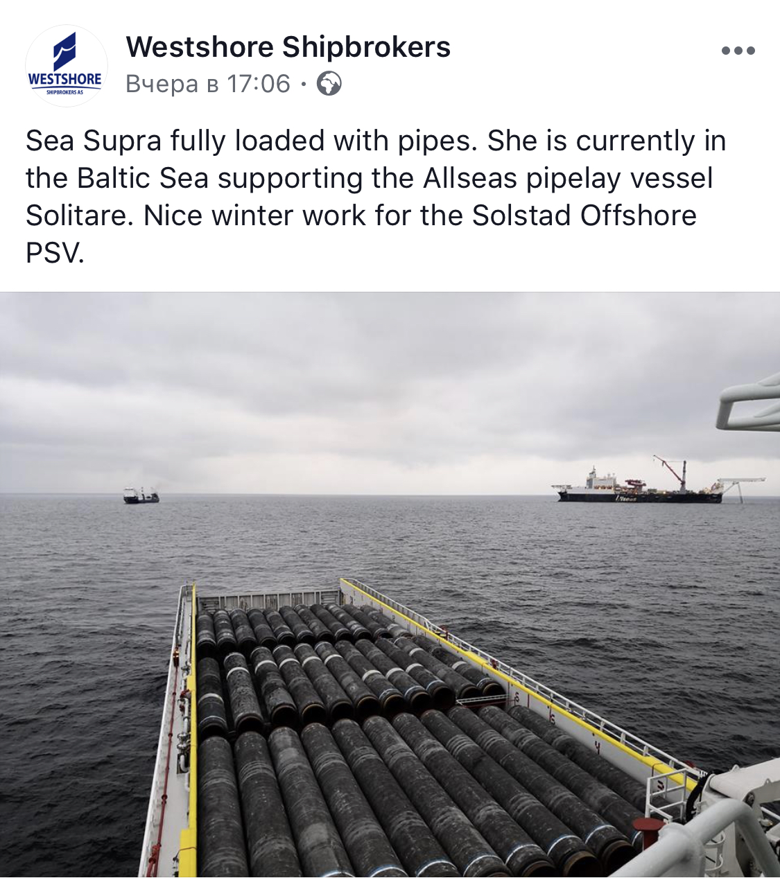 Северный поток 2: стройка началась... норвеги подвозят трубы, голландцы кладут трубу.