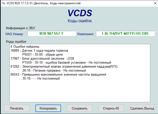 Года два не подключал диагностику, решил посмотреть какие ошибки накопились.