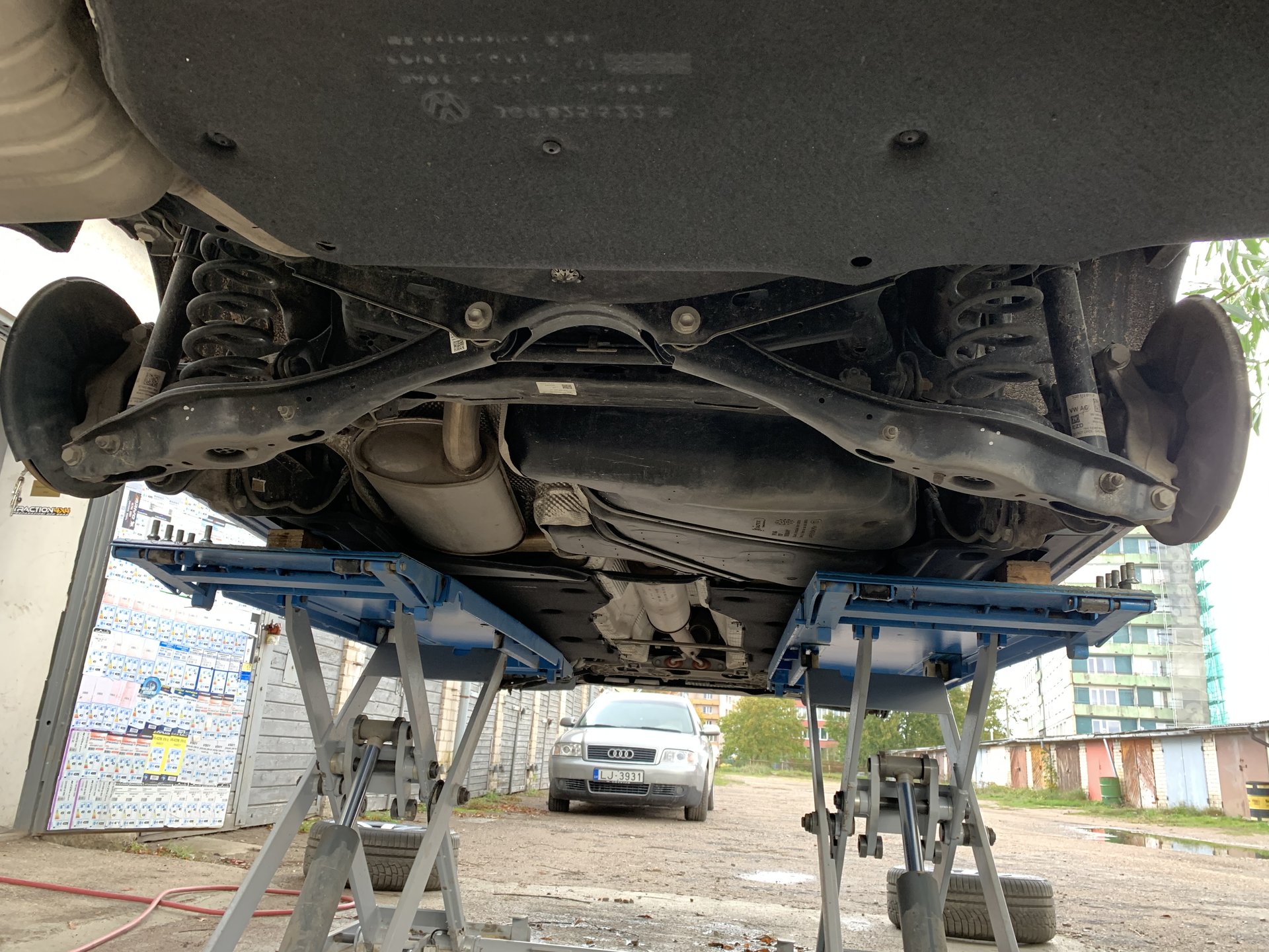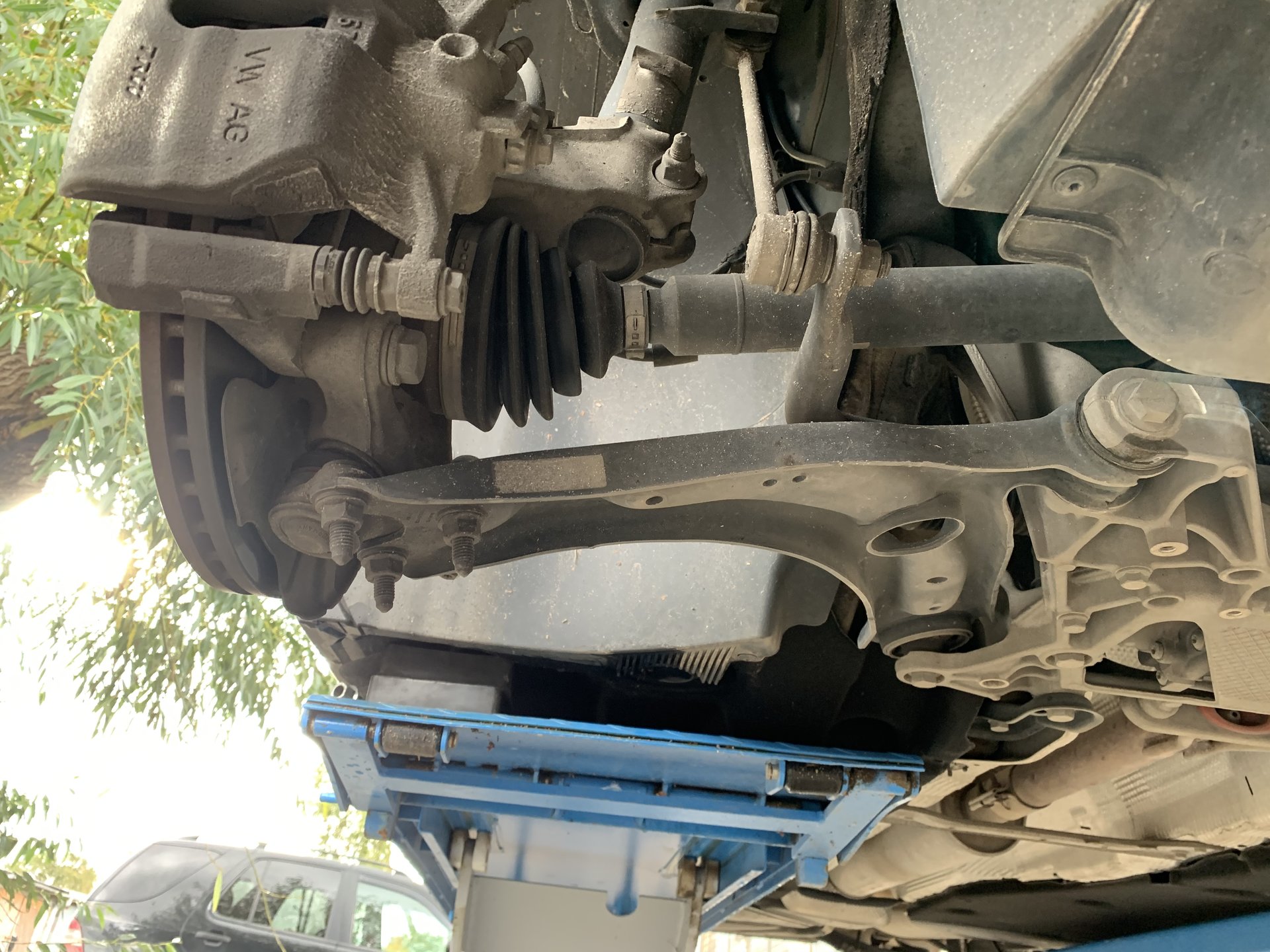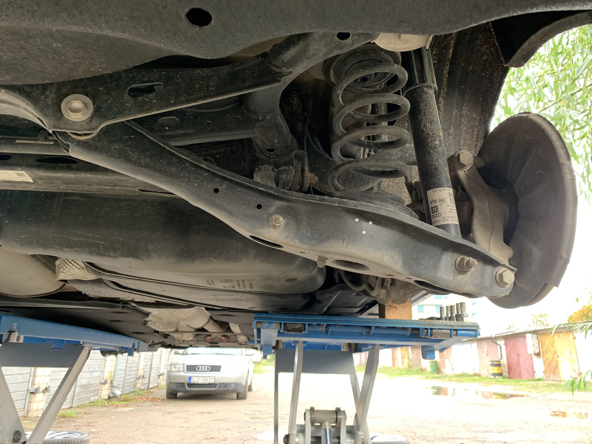 Сегодня первый раз разглядел пассат снизу. Раньше как-то не представлялось возможности. Удивило то, что рычаги ходовки стальные. Интересно, почему VAG отказался от алюминия.