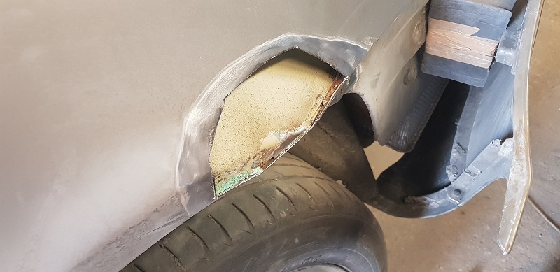 Еще одна Шкода, но с этой работы было больше. На задних крыльях сгнило основательно, пришлось сваркой устранять.