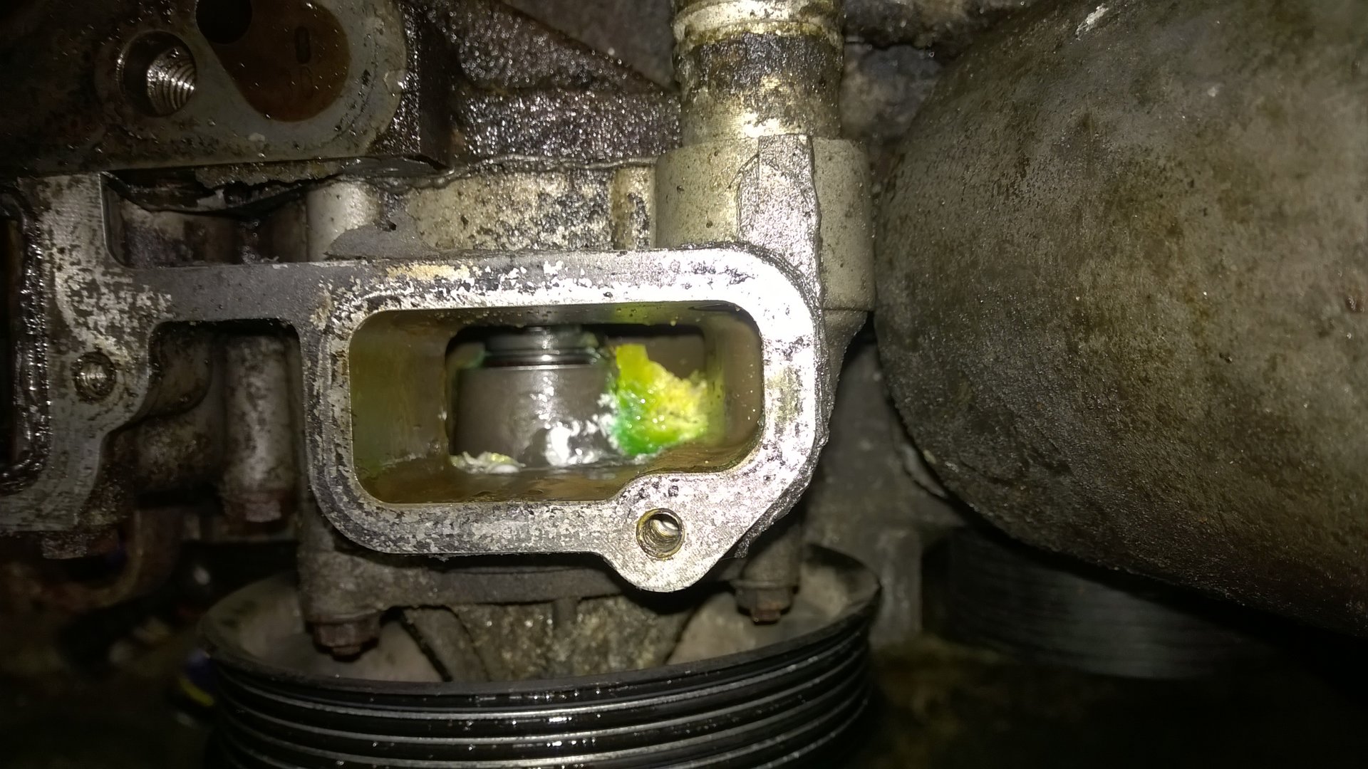 Заглянул в старый блок в районе помпы. Зелёное желе. Похоже антифриз. Что заливать?